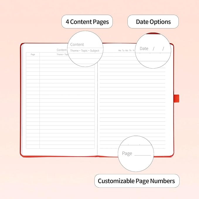 - 【Acid Free Paper】Include 4 table of contents pages to keep your notes organized and easy to reference, 220 college ruled liend Pages have day of week to circle and a place for date,and a page number you can fill in in the bottom