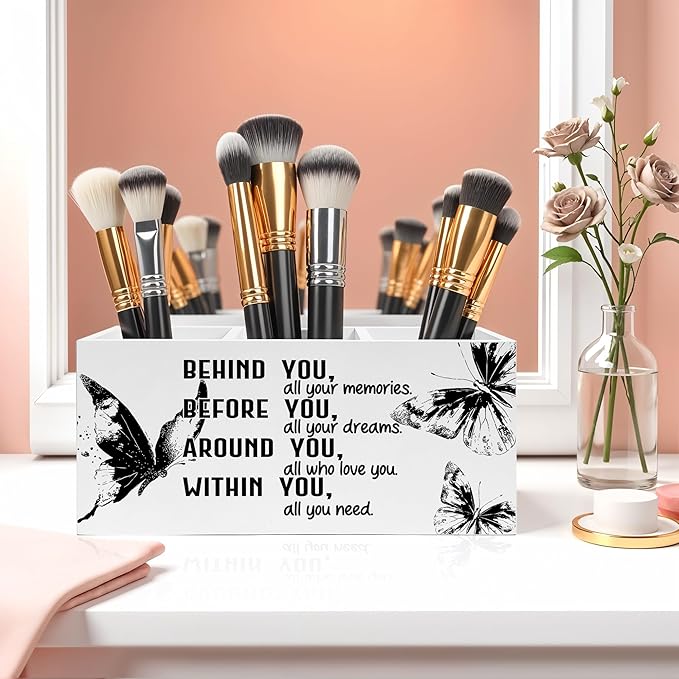 - Three Compartments: Divided sections offer convenient storage for pens, brushes, remote controls, or accessories - helping to keep surfaces tidy and organized.