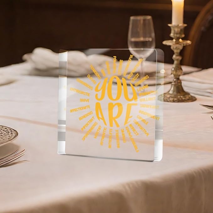 Sunshine Gifts for Women Men Friends, Motivational Reminder Desk Decor Acrylic Sign, You Are Positive Affirmation Desk Accessories Signs for Table Top Cubicle Room Office