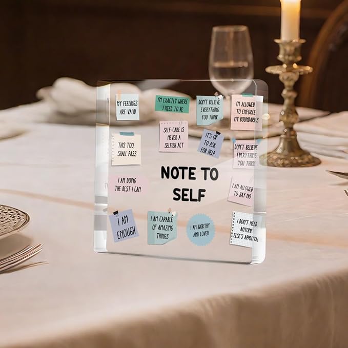 Positive Affirmation Gifts for Women Men Friends, Mental Health Therapist Office Desk Acrylic Sign, Counseling Office Art Decorative Signs for Desk Shelf Tabletop Cubicle, Note to Self