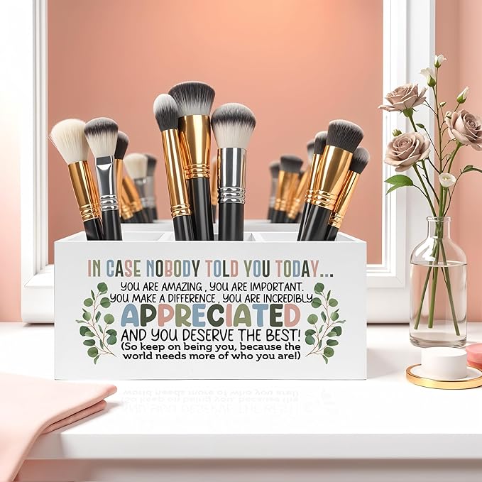 Boho Inspirational Pencil Pen Holder for Desk, Appreciation Gifts for Coworkers, Boss Gifts for Women Men Wooden Pencil Holder Organizer for Home Office Desk Accessories