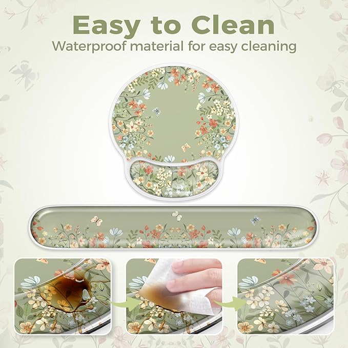 - ANTI-SLIP BOTTOM SURFACE: The wrist pad for keyboard and mouse's ultra-durable bottom layer is designed to fit most desktops securely, allowing you to focus on your work without having to worry about adjustments