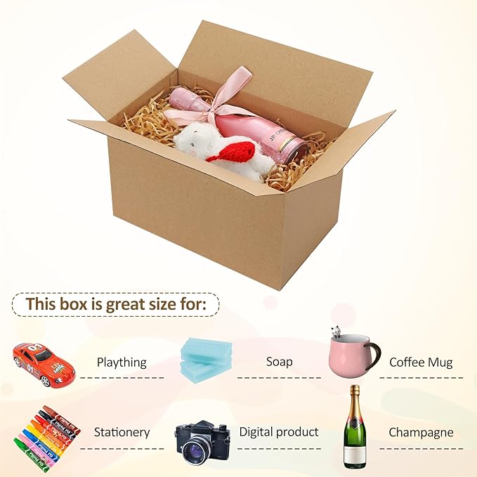 - Dimensions and Quantity: Eupako small shipping boxes for small business measure 10x6x6 inches and come in a pack of 30. Perfect for shipping small items such as soap, glass bottles, candles, pins, books, mugs, cookies, cosmetics, toys, and clothing