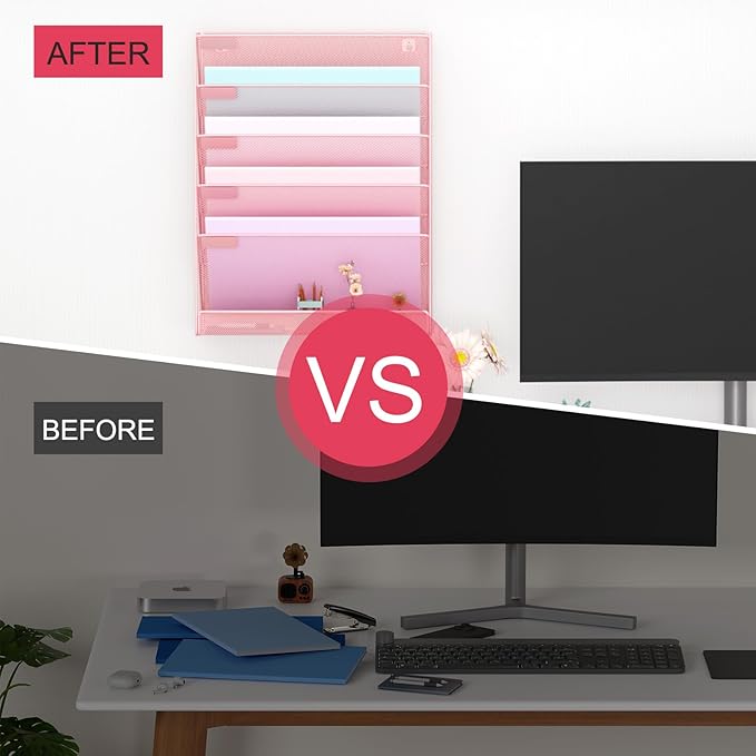 - SAVING SPACE-The mesh hanging organizer is composed of 5 pockets, it can storage files, paper, documents, letters, maximize your vertical space and keep your desk clear.