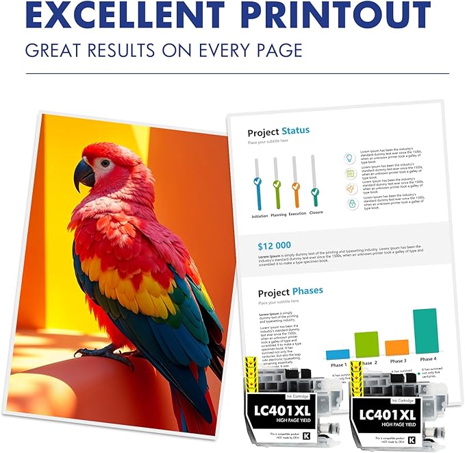 - High Page Yield: High yields up to 500 pages per LC401XL Black Ink Cartridge (5% coveragae*A4 paper size)