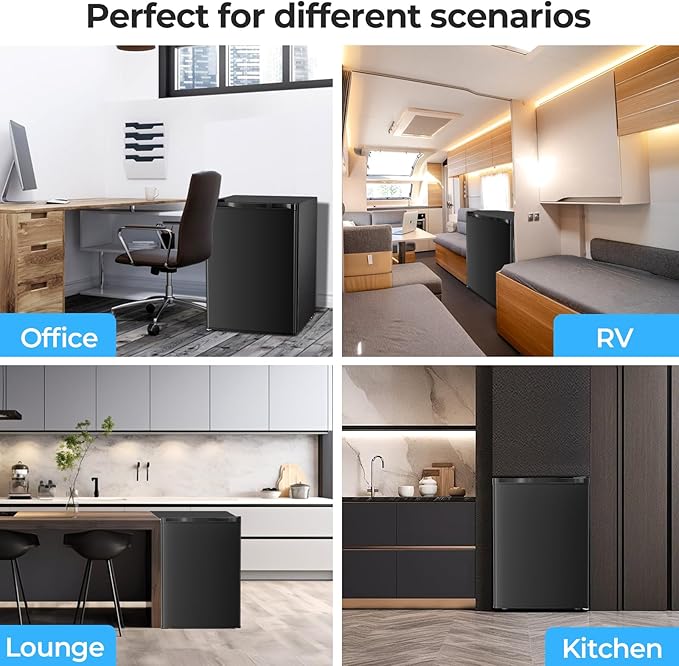 Antarctic Star 2.56 Cu.Ft. Mini Fridge with Freezer, Small Refrigerators with Adjustable Thermostat, Low Noise, Energy Saving, Compact Refrigerators for College Dorm, Office, Bedroom, Apartment, Black