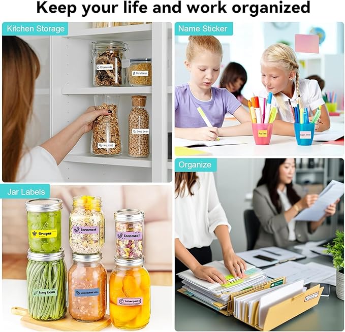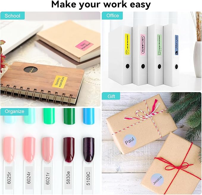 - Wide Application: D1 sticker printer is widely used for labeling and organizing household items - storage, commodity prices, food dates, cosmetics classification, bottle stickers, jewelry classification; school student supplies and office document classification, cable identification, personal item identification, name labels; small business public asset labels. It is an ideal gift for Mother's Day/Father's Day party decorations/birthday gifts for friends.