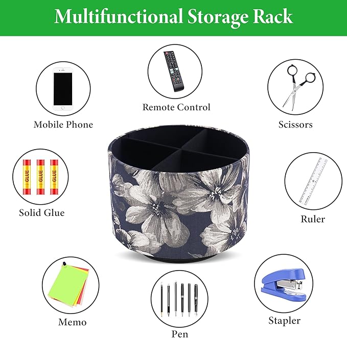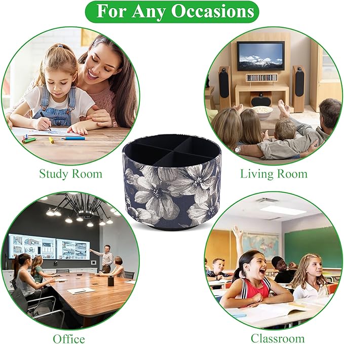 - ✎360° Revolving Design: You can freely rotate the pen holder steadily left and right,unique spinning base design allows easy access to items from any directions.The non-slip pads on the bottom keep it stay in place when rotating.