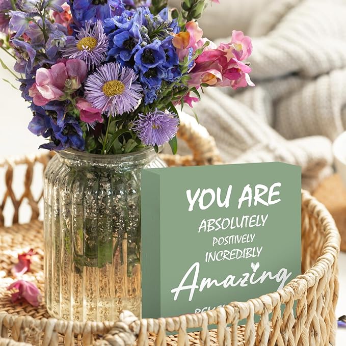 - Inspirational Gift: This sage green tabletop decor sign printed with "You Are Absolutely Positively Incredibly Amazing Remerber That" is a star of hope for friends, family, it is a great motivational quote gift, it will remind you that you are awesome, a positive mental health gift that delivers powerful encouragement and hope.