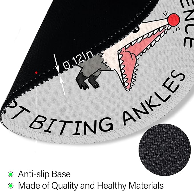- Awesome Mouse Pad Design: Round mouse pad features a possum with its mouth wide open and comes with the funny sentence, " One more inconvenience, and i start biting ankles", it brings a laugh to everyone; Cute and vibrant appearance brings us good visual enjoyment and positive emotions when working, studying or gaming, suitable for all styles of desktop, keyboard, laptop and wireless computer mouse