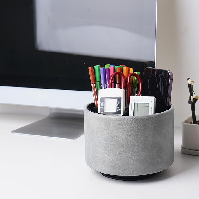 - ✎360° Revolving Design: You can freely rotate the pen holder steadily left and right,unique spinning base design allows easy access to items from any directions.The non-slip pads on the bottom keep it stay in place when rotating.