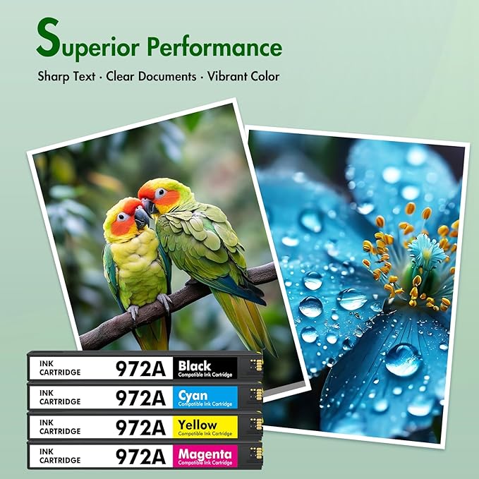 - High Page Yield: Up to 3,500 pages per 972A Black Ink Cartridge, up to 3,000 pages per 972A Color Ink Cartridges (5% coverage at A4 paper)