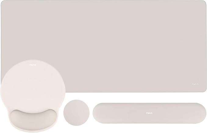 MOSISO Wrist Rest for Keyboard Mouse Pad Set, Large Gaming Deskpad&Circle Curved Mousepad&Keyboard Wrist Rest&Coaster, Ergonomic Non-Slip Mousepad&Easy Typing Pad with Curved Memory Foam, Stone Gray