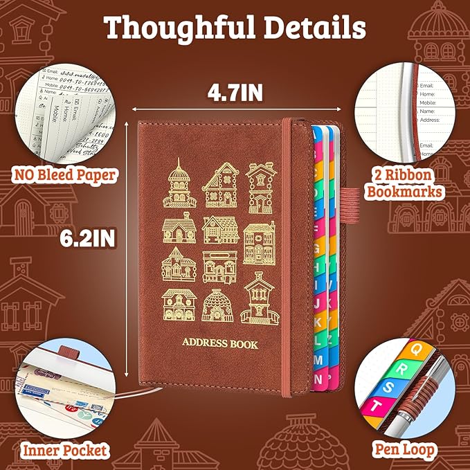 - 【It’s the Little Things that Make a Big Difference!】Ever lost your place in a telephone book, had ink bleed through, or couldn’t find a pen when you needed it most? This address book solves those little daily frustrations with 100gsm no-bleed paper, 2 color-coded bookmarks to mark important pages, a built-in pen loop, and a handy inner pocket for notes or cards. Whether you're at your desk or on the move, these small touches make staying organized effortless.