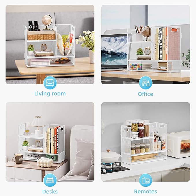 - 【Suitable for Various Occasions】: This desk bookshelf organizer is suitable for a variety of occasions,not only be used in offices, schools and homes, but also can organize cosmetics and all kinds of spices, more beautiful in the office and home.