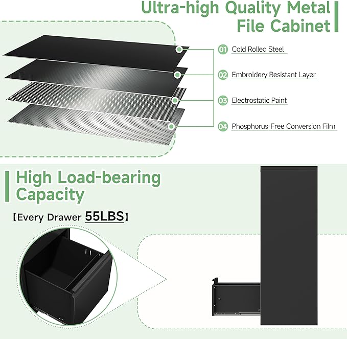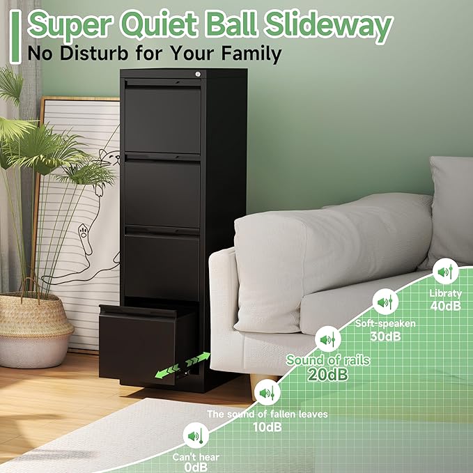 - 【Quiet & Smooth Glide Drawers】 No more struggling to open jammed drawers or stuck files with each drawer equipped with precision ball-bearing glides for easy opening, closing, and everyday use.Low noise levels allow you to work from home without worrying about disturbing your family's rest.
