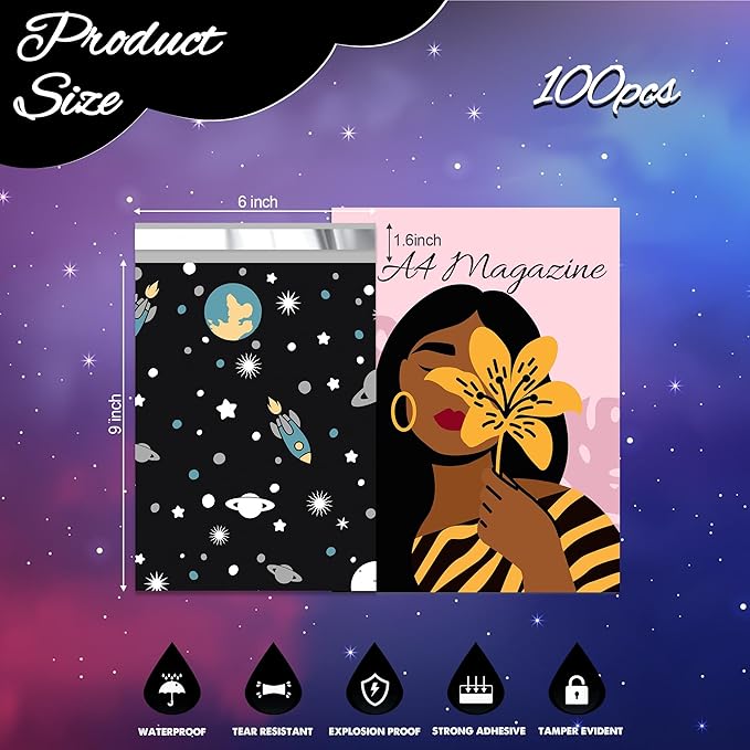 Planets Poly Mailer 6x9 Inch 100 Pcs, Waterproof Shipping Bags for Clothing, Tear-Resistant Mailier Bags, Strong Mailing Bags with Self-Seal