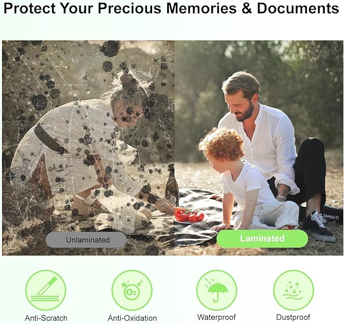 - High Efficiency: The hot mode only takes 1-2 mins to warm up. And the laminating machine features 2 heated rollers at the fast working speed of 340mm/min, which will greatly improve your work efficiency. The 2-roller system ensures smoother, and longer-lasting lamination, efficiently avoiding bubbles, wrinkles, or curled edges