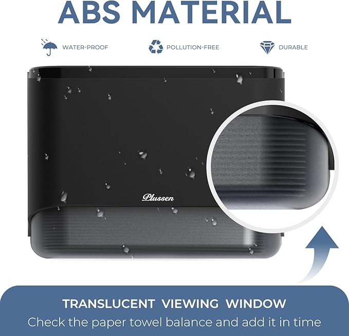Paper Towel Dispenser Wall Mount, Adhesive No Drilling Multifold Trifold Cfold Commercial Hand Towel Dispenser (Black-PN6012)