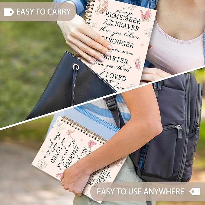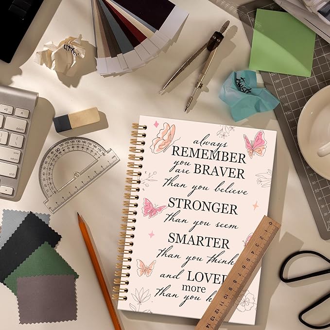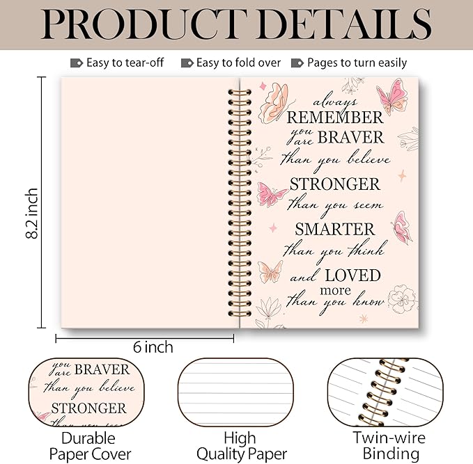OINDADE Motivational Butterfly Notebook Journal, Inspirational Gifts Pink Spiral Notebook, You are Brave Motivational Notebooks Gifts for Women Girls, Positive Gifts School Office Supplies, 6x8.2In