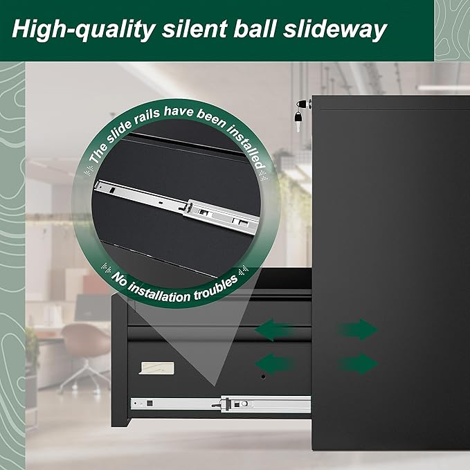 - ✔Easy to Assemble -- With ball bearing full extension drawer slides, the file drawers opens completely, allowing you to access the contents in the back of the office drawer cabinet easily and quietly. ★Kindly reminder★: The two drawer file cabinets will be easy to assemble with following the installation video. if you're still having trouble, we'd be happy to help, just get in touch!