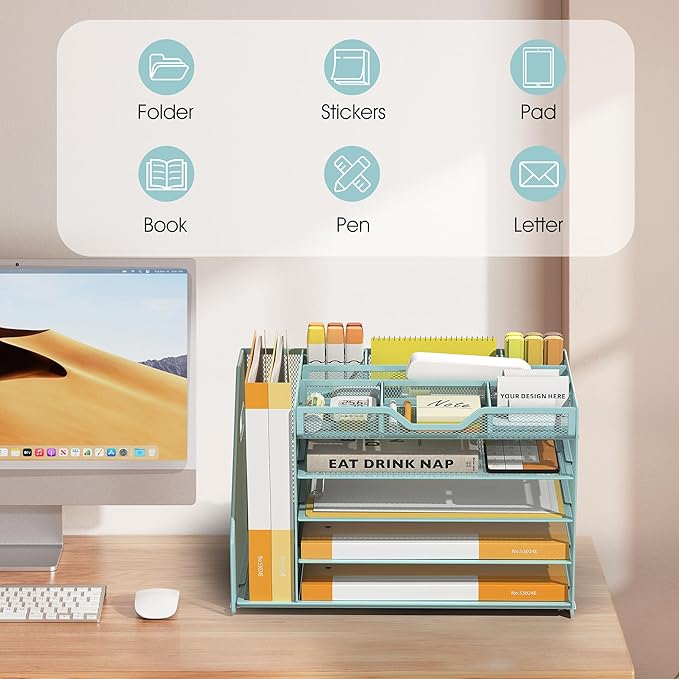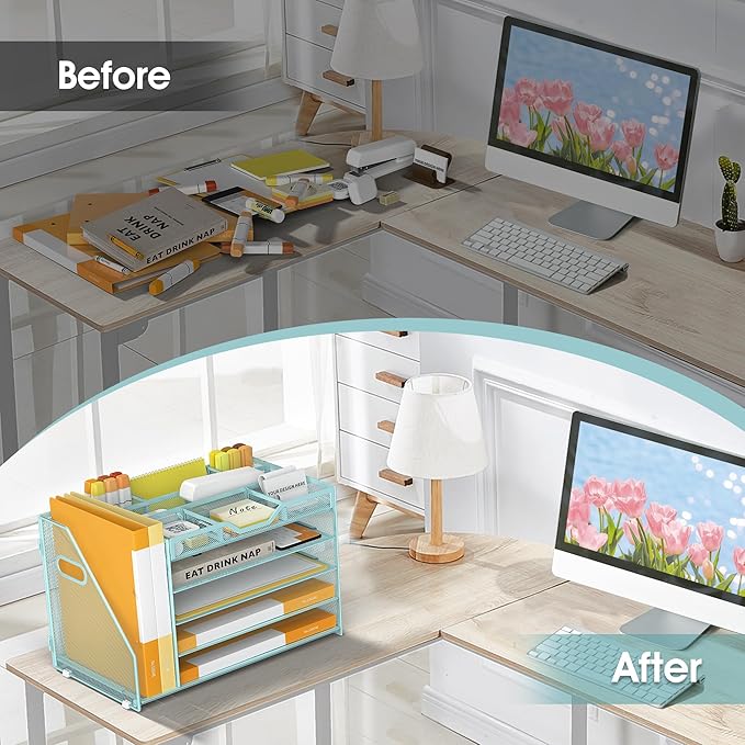 - Quality Materials and Superb Craftsmanship-Featuring a lightweight and durable metal mesh construction with a sturdy frame and powder-coated finish that ensures the desktop file manager won't bend or break when holding large quantities of paper, files and books, the file manager has a smooth finish that complements the office's work decor