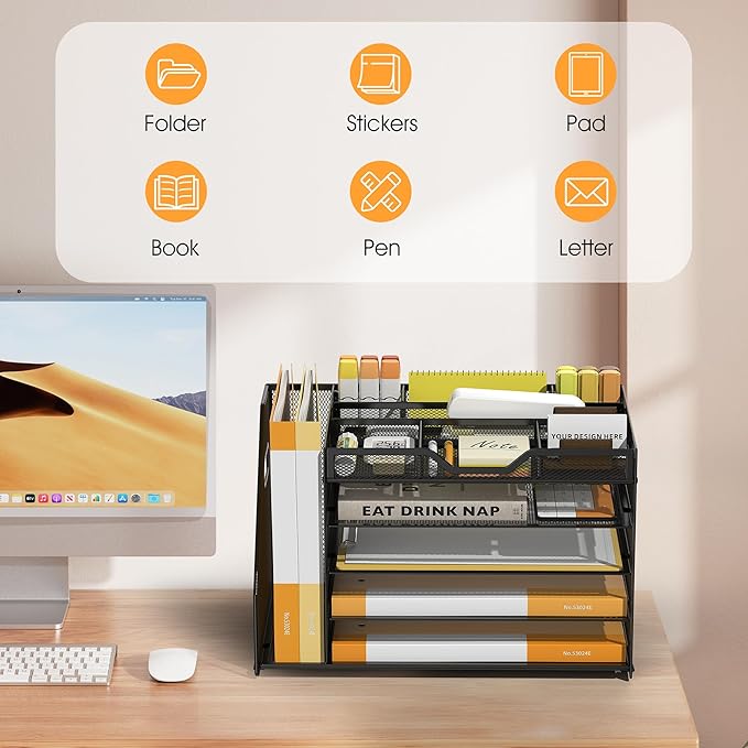 - Quality Materials and Superb Craftsmanship-Featuring a lightweight and durable metal mesh construction with a sturdy frame and powder-coated finish that ensures the desktop file manager won't bend or break when holding large quantities of paper, files and books, the file manager has a smooth finish that complements the office's work decor