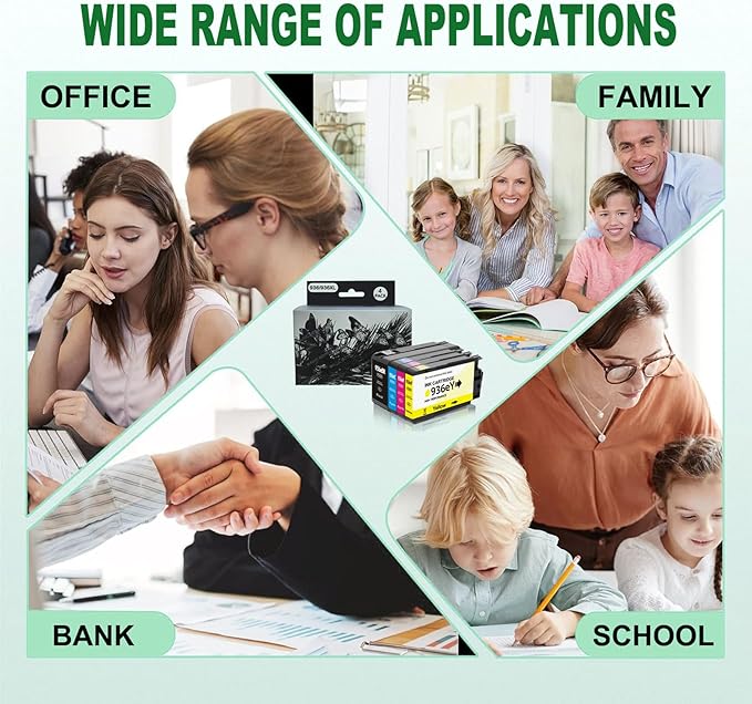 - High Compatibility: New Generation chip show accurate ink level , 936 936E 936XL combo pack bring you vivid and clear printing. 936E 936XL ink cartridges can be instantly identifed by your printers and work perfectly, making daily documents, reports, letters, graphics and photos very clear and bright