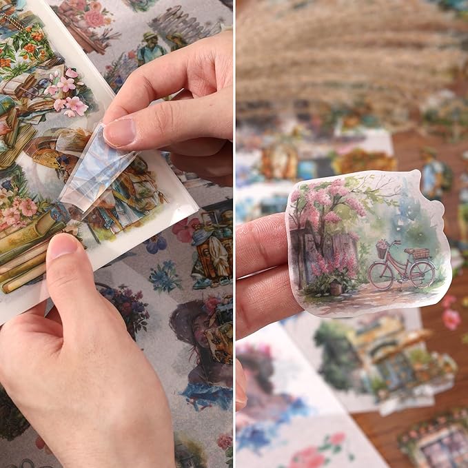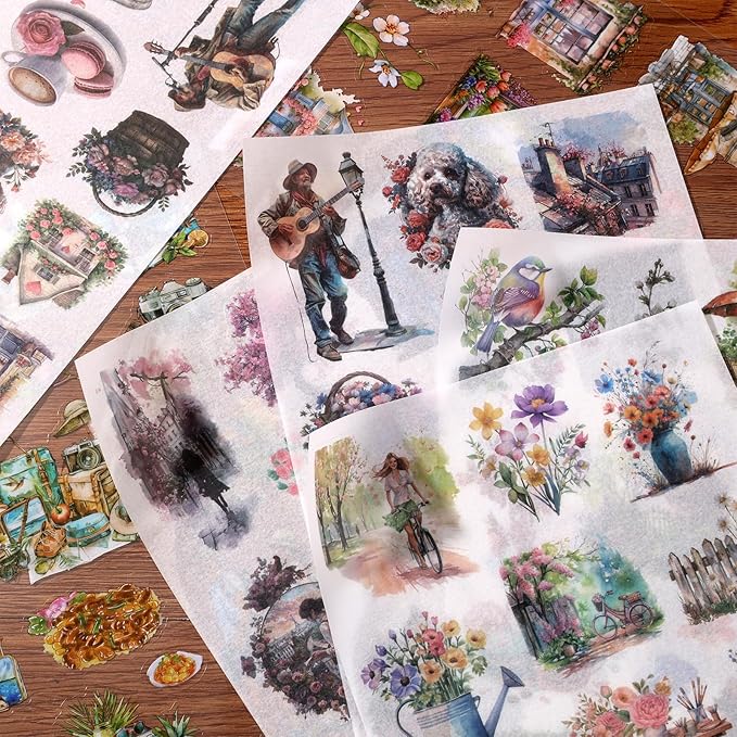 - The stickers are pre-cut and easy to apply. They are firmly attached and do not leave residue when removed. The sticker images are clear, bright, and beautifully printed. With designs including flowers, beach characters, houses, birds, dogs, girls, and all kinds of landscapes, you can add a beautiful, personalized, artistic touch to your life and creations!
