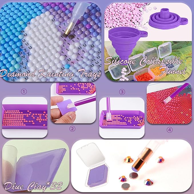 - Complete diamond painting kit: This set includes basic diamond painting accessories and diamond art tools to enhance your crafting experience. This comprehensive kit comes with A4 diamond painting light pads, diamond art pens and replacement heads, diamond art sealer glue, correction tools, anti slip clips, diamond painting clay, tweezers, diamond painting trays and other tools to ensure that you have everything you need for a diamond art project.