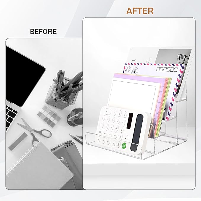 - 【Easy to Use】The Dimension of this acrylic file organizer is 6.7 x 6.1 x 6 inches,no installation needed,it's a must-have desktop organiser for office, home and school