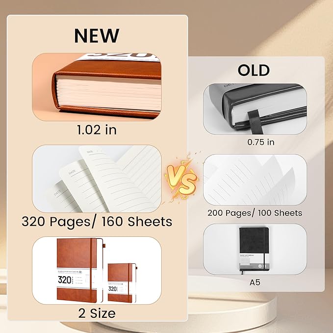 - 320 Pages Journal Notebook- Journaling notebooks with 320 pages provides you with enough writing space. A5 lined journal with 100gsm paper, thicker than normal paper, will not cause bleeding, ghosting or smudging and is suitable for most types of pens.