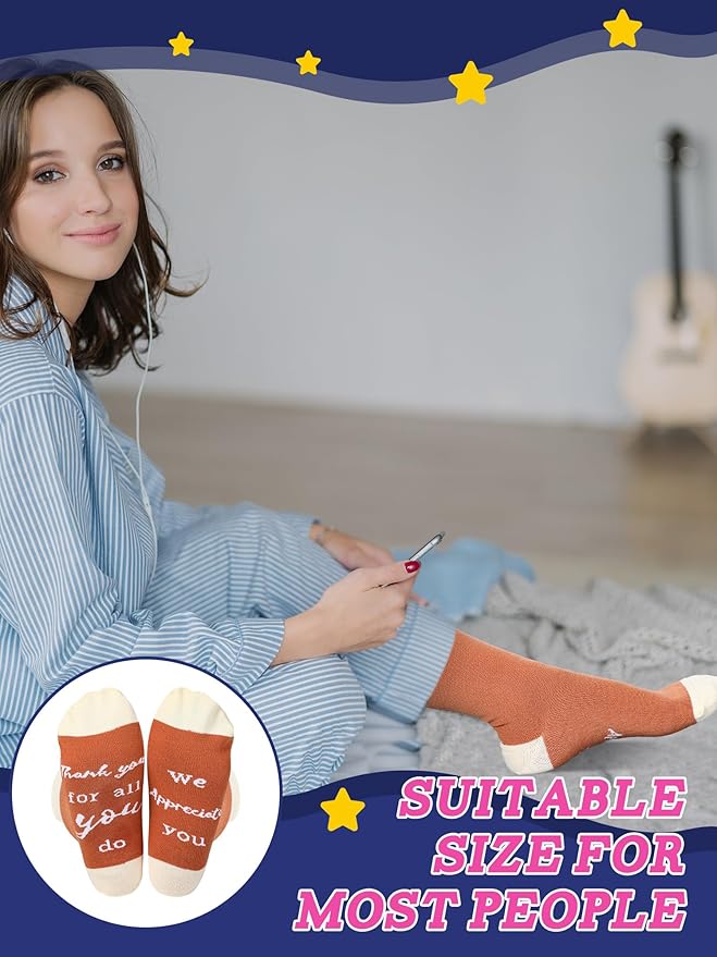 - Medium Size: no need to worry about sizing when you put on our "Thank You" socks! Designed to fit US shoe sizes 7 - 11, they are suitable for most men and women; The comfortable fit ensures the socks stay in place and won't slip off your employees