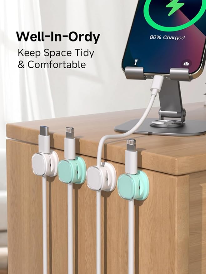 - Hold Most Cords: Diameter of about 0.3 inch (7.5mm) allows to hold most cords, such as Type-C charger cords, lightning cords, HDMI cords, USB cables, PC Notebook power wires, network wires, mouse cords, keyboard cables, headphone cords