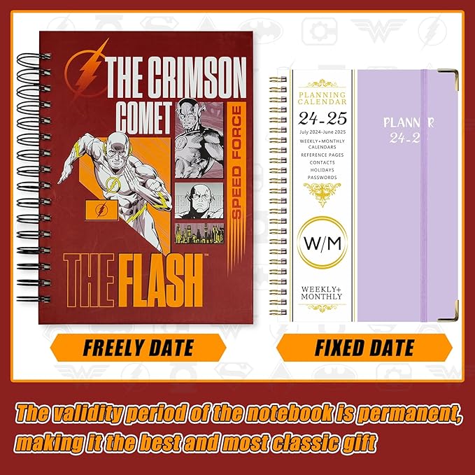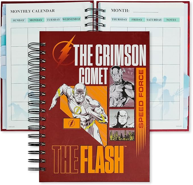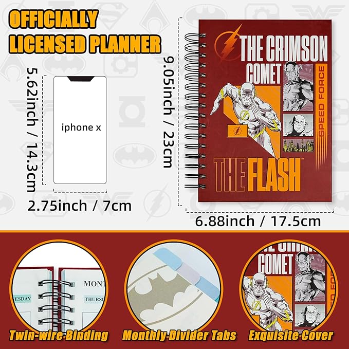 Cool Hero Academic Planner, Weekly Monthly Daily Agenda, Custom Date Organizer for Junior,Senior Students, Spiral Bound Notebook with Colorful Tabs,Datebooks for Time Management (Red and Yellow)