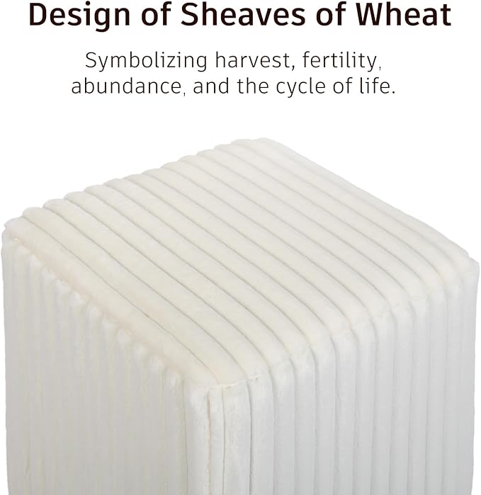 Modern Square Ottoman 2Pcs, Vertical Channel Tufted Foot Stool Ottoman, Velvet Upholstered Vanity Stool for Makeup, Bedroom, Living Room, White