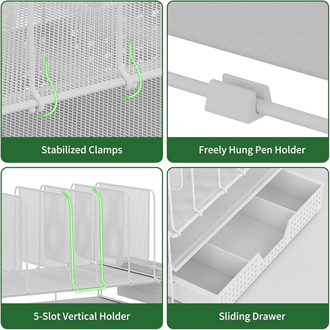 - { Sturdy & Durable } Made of premium metal, the workspace organizer is sturdy and durable for a long-lasting use, providing a stable desk top storage solution. Smooth surface and rounded edges are designed for safe use and will not damage documents