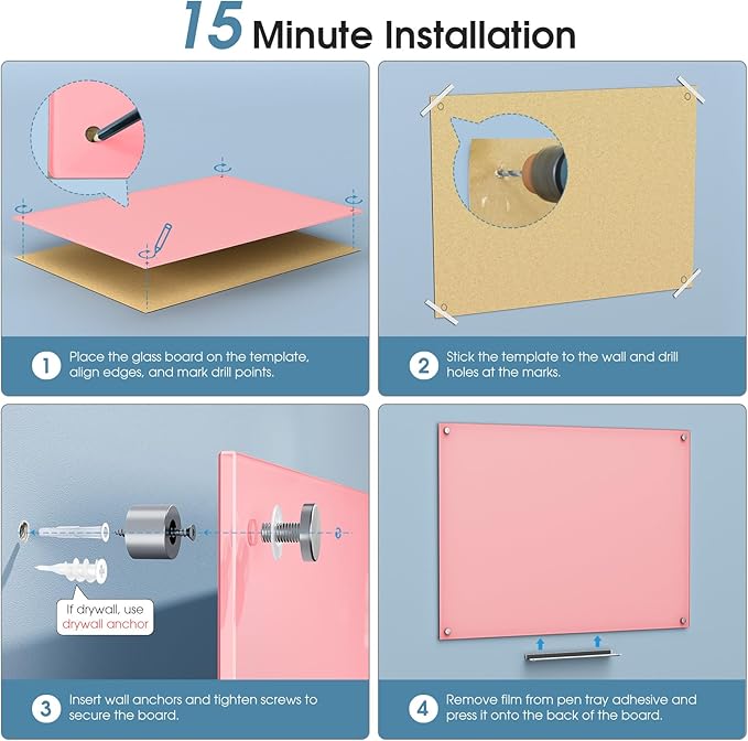 - 15-Minute Fast Installation with Complete Professional Accessories: Comes with an installation template, accessory tray, premium magnetic glass board eraser; easy setup within 15 minutes for horizontal or vertical mounting