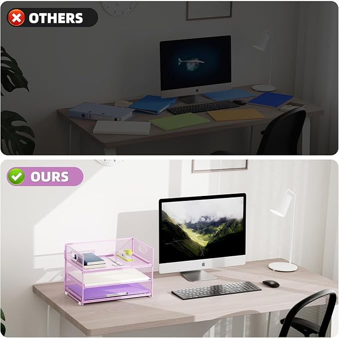 Marbrasse 3 Tier Paper Organizer Letter Tray, Mesh File Organizer with Handle, Paper Sorter Desk Organizer for Home Office Supplies - 2p Purple