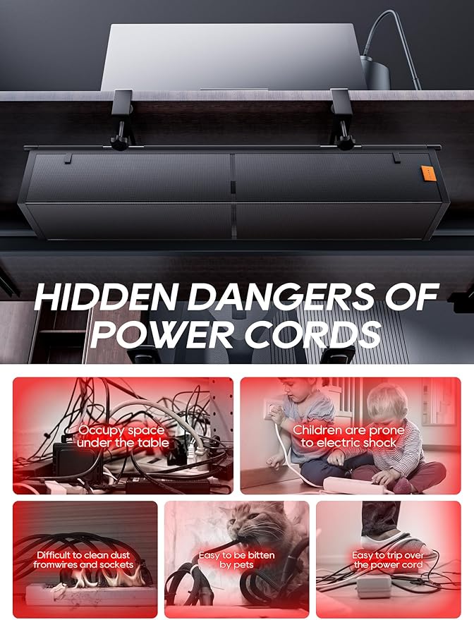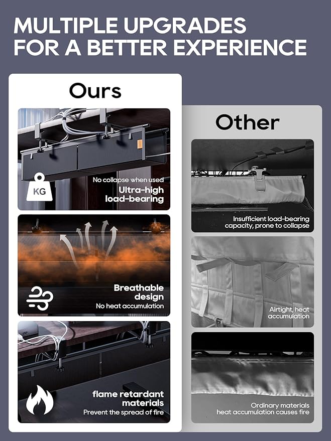 - NO DRILL——Fix the under desk cable tray with the clamp-clip and tighten it, 3s to complete. The important thing is that it doesn't damage your desk