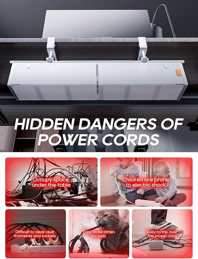 - NO DRILL——Fix the under desk cable tray with the clamp-clip and tighten it, 3s to complete. The important thing is that it doesn't damage your desk