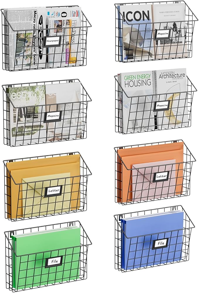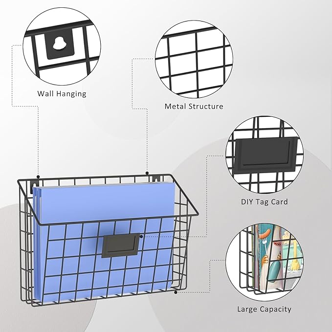 - Save More Space: By fully utilizing vertical space, this file wall hanger helps you efficiently organize items and keep your desktop tidy. It effectively stores files, magazines, and mail, and comes with 8 blank tag papers for easy categorization. Warm tip: The product's round hole has been upgraded to a more sturdy gourd-shaped hole, enhancing durability and installation convenience.