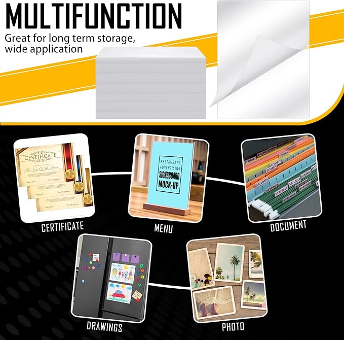 - Multiple Applications: our thermal laminating pouch is suitable for your documents, cards, artwork, photos, pictures, etc., with a flexible and stable surface, which can support long term service life