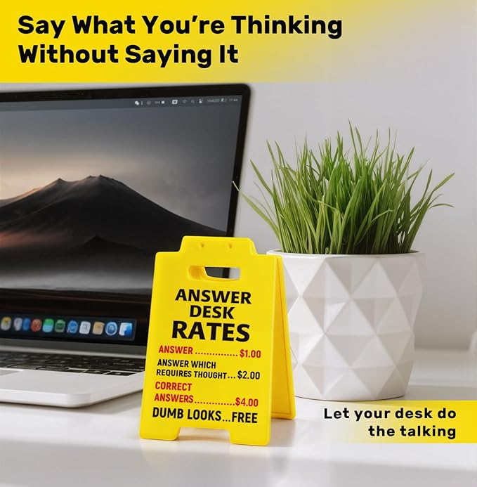 - Funny Office Desk Decor: This witty answer desk rates sign is the funny desk accessories for coworkers friends teammates who always have the answers—and the sarcasm to match. Great for birthdays, christmas, white elephant gifts, promotions, or just surviving another Monday