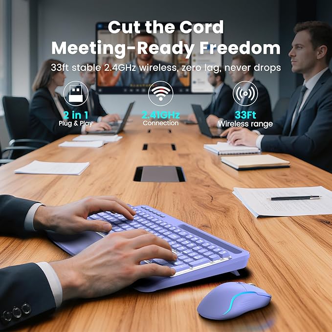 - Ultra-Soft & Silent Scissor-Switch Keys: Experience typing bliss comparable to low profile mechanical keyboards—silent, smooth travel, no jams. Type fatigue-free for hours. Try this keyboard sets today to enhance your work comfort, you will never regret it. *(Enjoy peace of mind: 30-day returns + 1-year replacement.)*