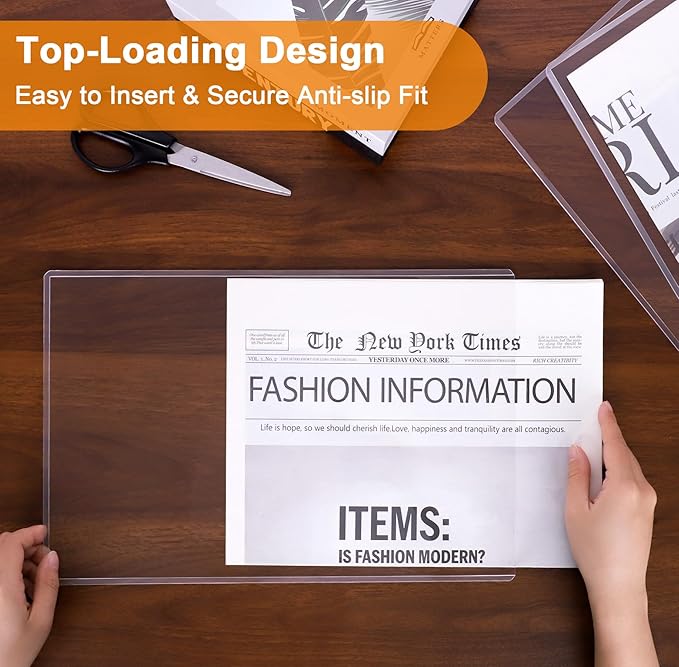 - Top-Loading & Reusable: The convenient top-loading feature allows easy insertion and removal of menus, papers, documents, photos, and prints without damaging the edges, making it ideal for frequent use