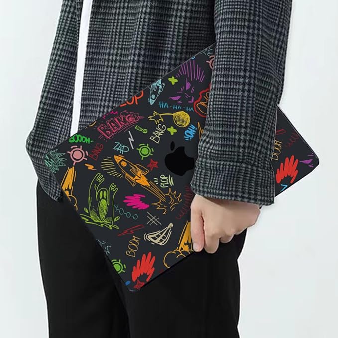 for MacBook Air 13.6 Inch Case 2025 2024 2023 2022 Release Model M4 A3240 M3 A3113 A2681 M2, Crystal Black Pattern Plastic Hard Shell Cover for MacBook Air 13 M4 Chip 2025, Doodle Word