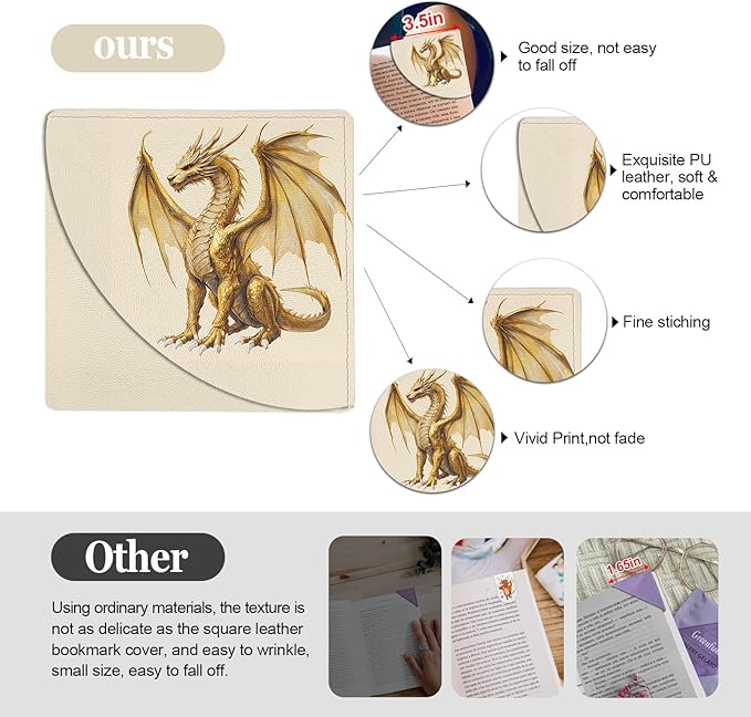- Water Resistant and Long Lasting:Corner bookmarks are made of soft leather, waterproof,sturdy and lightweight, not easy to fade or break, not easy to break or deform, smooth surface and comfortable to touch, and does not hurt the book. It can protect the corners of the book,and can be applied for a long time. The clever corner design that allows them to be more securely attached to the book,They can hold one page or multiple pages with ease,not easy to fall off