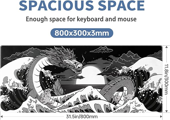 - ✅Large Size: This Large Mouse Pad Is 31.5 X 11.8 In (80 Cm X 30 Cm), Offering A Wide Area For Keyboards And Mouse To Move Around. This Extended Gaming Mousepad Xl Keyboard Mat Desk Mat Fits Different Gaming Desktops, You Can Also Use It As Desktop Or Platform Protector. Exquisite Wave Sea Dragon Mouse Pad Patterns Give You a Better Experience.