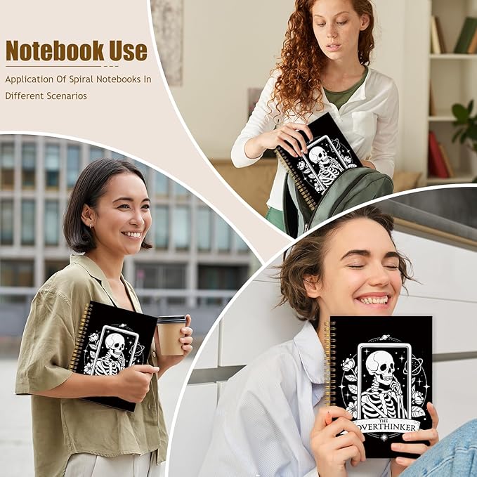 WUCHJ the Overthinker Tarot Card Spiral Notebook Journal, Gothic Goth Skull Notebook Journal, Witchy Journal, Goth Office Supplies, Witchy Stuff Spiral Notebook 5.5x8.3